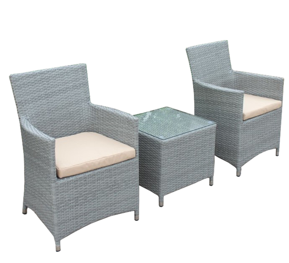 RATTAN SET ΑΛΟΥΜΙΝΙΟΥ ΓΚΡΙ 2 ΠΟΛΥΘΡΟΝΕΣ 62Χ60Χ86 ΤΡΑΠΕΖΙ 50Χ50Χ45 ΤΖΑΜΙ 5mm ΜΑΞΙΛΑΡΙΑ 6cm.