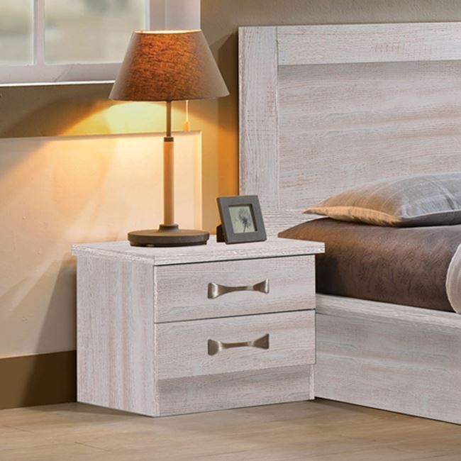 LIFE Κομοδίνο με 2 Συρτάρια, Απόχρωση White Wash